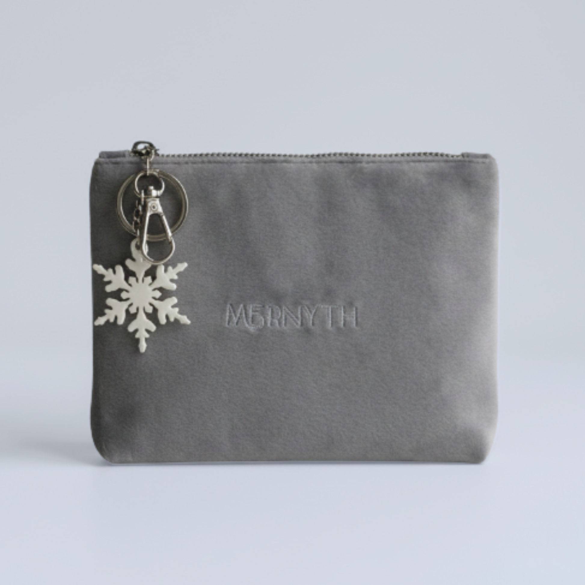 Soft, refined, and effortlessly elegant, the Mernyth Velvet Frost Makeup Pouch brings a touch of winter-inspired luxury to your everyday essentials. Crafted from plush grey velvet, its structured rectangular shape offers a sleek silhouette with generous space for makeup, skincare, or travel necessities.